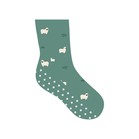 Soft, snuggly, and ready for frolicking, these gentle green sheep socks are for little lambs with big dreams.